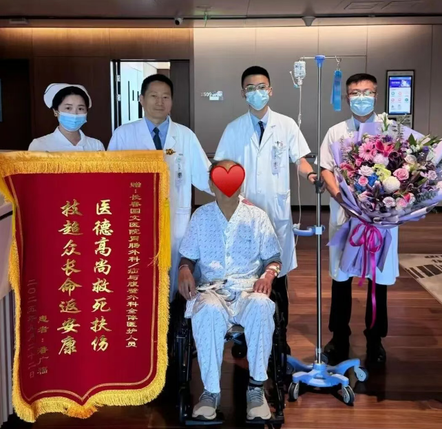 康复期间,张先生家属特意制作锦旗送到胃肠外科医护人员手中,再三感谢团队在高风险下不放弃、用专业守护生命的担当。此次救治既未因风险放弃治疗,也未因简化流程置患者于血栓险境,而是以多学科协作与创新方案为患者铺就安全路径。