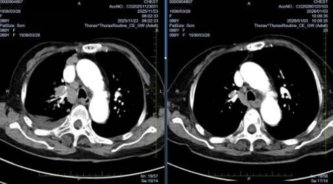 近日,一位被外院判定为“无抗肿瘤治疗指征”、转入医院进行临终关怀的89岁女性患者,经长春国文医院胸部肿瘤放化疗科团队精准评估与个体化治疗后,病情好转。该案例展现了长春国文医院的多学科协作能力、精准诊断能力以及综合治疗能力,为处理复杂肿瘤病例提供了有益借鉴,也为更多晚期肿瘤患者带来了希望。
