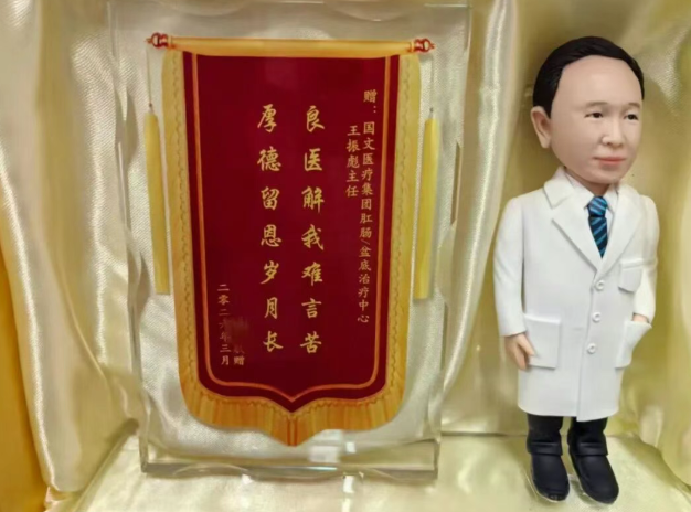 一面面锦旗,一句句赞誉,是傅先生康复后对王振彪主任及医护团队最直接的肯定。他还特意定制了王振彪主任的卡通纪念摆件,将这份医患温情永久珍藏。
