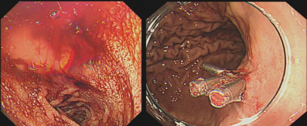 术中发现患者黏膜存在活动性出血,伴有大量鲜血及血凝块潴留。李国庆主任随即实施内镜下钛夹止血术,在清晰视野下精准清除血凝块并完成彻底止血。术后患者无活动性出血,贫血状态逐步改善。